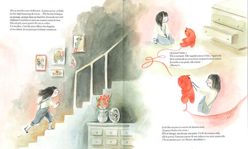 ぬいぐるみのエクトールは、ひきだしの奥に捨て置かれています。持ち主の「あの子」はすっかり大きくなったつもりで、ぬいぐるみなど眼中にありません。赤ん坊の弟にイライラし、眠れないあの子を見かねて「助けてあげる」とエクトールは声をかけます。両親にとって、自分はいないも同然だと感じています。エクトールはあの子によりそいます。弟の夜泣きを「野生動物の叫びみたいでこわい」と話していたあの子は、エクトールのおかげで心の不安や寂しさを乗り越え、弟を思うほどに成長します。