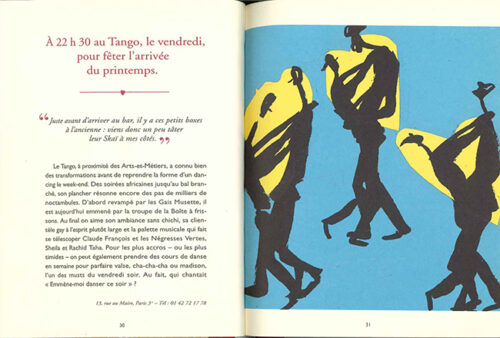 パリ12区の廃線跡の「緑の回廊」、ボン・マルシェのグランド・エピスリー、バスティーユの精霊像、チュイルリー公園の観覧車、アラブ世界研究所のテラス、マレのテラス・デ・マロニエ、ビュット・ショーモン公園の展望台、ラスパイユ大通りのオーガニックマーケット、ペール・ラシェーズ墓地、サン・トゥアンの市場、モスケの浴槽などなど、よく知った場所でしょう。でも、紹介の視点が素敵なのです。